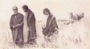 Un sábado en que Jesús atravesaba unos sembrados, sus discípulos comenzaron a arrancar espigas al pasar.